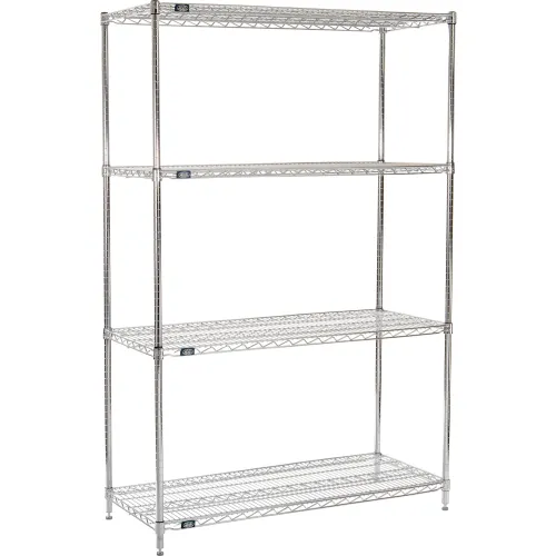 Nexel® 4 Shelf, Chrome Wire Shelving Unit, Starter, 48"W x 21"D x 74"H
