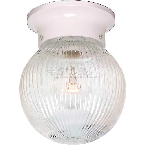 Nuvo 76/257, 1 Light-Ceiling Fixt., Clear Ribbed Ball, White, 6"W X 7.25"H