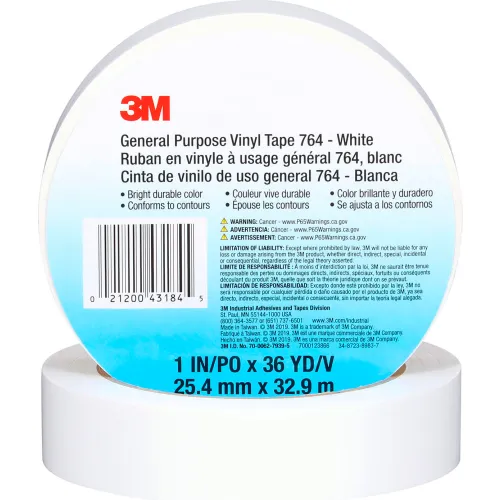 3M 764 General Purpose Vinyl Tape, 1" x 36 Yds., 5 Mil, White - Pkg Qty 36