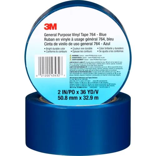 3M 764 General Purpose Vinyl Tape, 2" x 36 Yds., 5 Mil, Blue - Pkg Qty 24