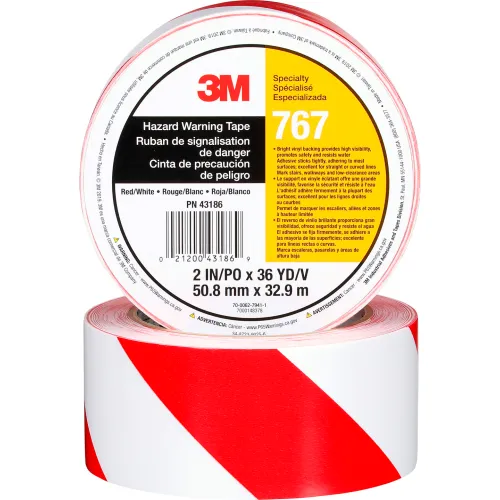 3M 767 Safety Stripe Vinyl Tape, 2"W x 108'L, Red/White - Pkg Qty 12