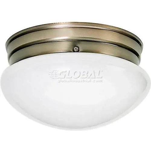 Nuvo 77/924, 2 Light-Ceiling-Flush Mount, Medium White Mushroom, Antique Brass, 9.5"W X 6"H