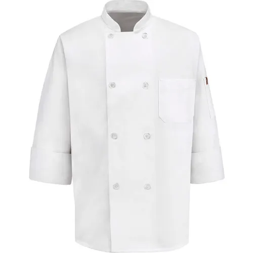 Chef Designs 8 Button-Front Chef Coat, Thermometer Pocket, Pearl Buttons, White, Poly/Cotton, XS