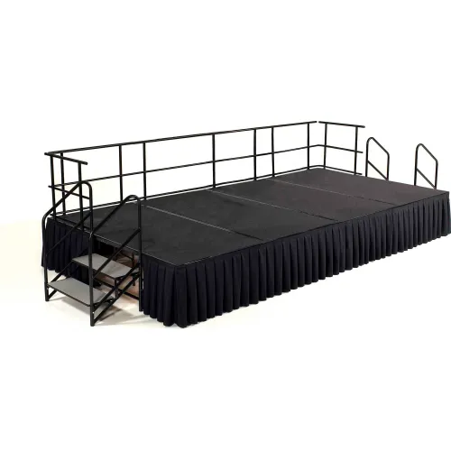 NPS® 8' x 12' Stage Package, 24" Height, Gray Carpet, Box Pleat Black Skirting