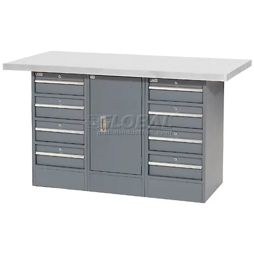 Global Industrial Workbench w/ Laminate Top, 8 Drawers & 1 Cabinet, 60"W x 30"D, Gray