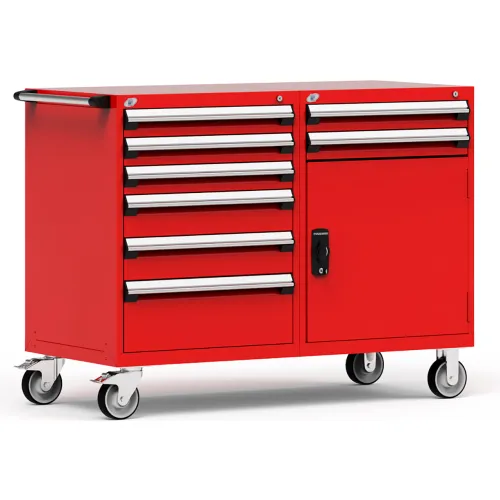 Rousseau 8 Drawer Heavy-Duty Double Mobile Modular Drawer Cabinet - 60"Wx27"Dx45-1/2"H Red