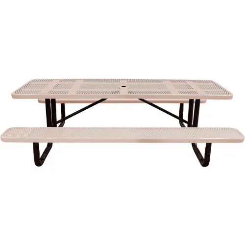 Leisure Craft 8' Rectangular Standard Picnic Table, Perforated Metal, Portable, Beige