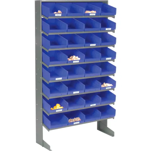 Global Industrial 8 Shelf Floor Pick Rack - 32 Blue Plastic Shelf Bins 8 Inch Wide 33x12x61