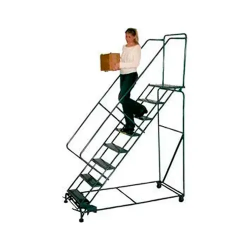 8 Step 24"W Steel Safety Angle Rolling Ladder W/ Handrails - Perforated Tread - SW830P