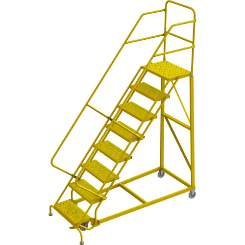 8 Step 24"W Steel Safety Angle Rolling Ladder, Perforated Tread, Safety Yellow - KDEC108246-Y