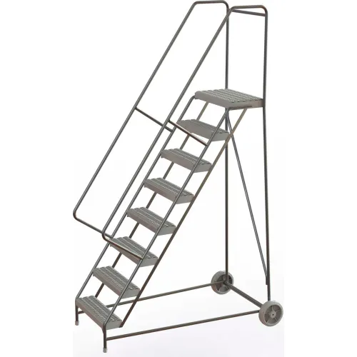 8 Step Aluminum Wheel-Barrow Style Rolling Ladder 24"W X 14"D Plat. Grip Strut Tread - WLARTR108245