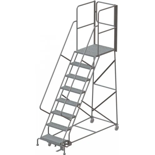 8 Step Steel Rolling Ladder W/Rear Exit Walk Off Gate, 24"W X 30"D Plat. Perforated - KDSR108246-XR