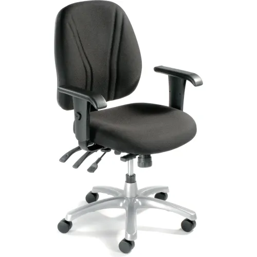 Interion® Multifunction Chair With Mid Back, Adjustable Arms, Fabric, Black Seat/Silver Base