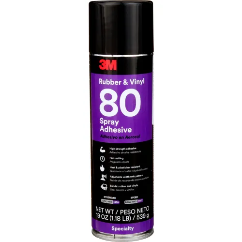 3M 80 Rubber and Vinyl Spray Adhesive, Yellow, 24 fl oz Can - Pkg Qty 6
