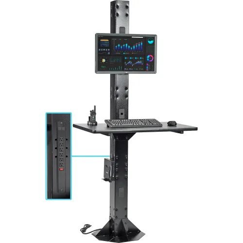 Global Industrial 81"H Stationary Floor Mount Orbit Computer Station Power Outlets Black