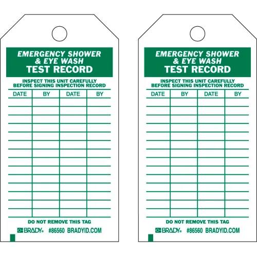 Brady® 86560 Emergency Shower & Eye Wash Test Record Tag, Polyester, 3"W x 5-3-3/4"H, 10/Pkg