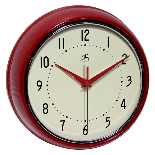Infinity Instruments 9.5" Wall Clock, Red Metal Retro