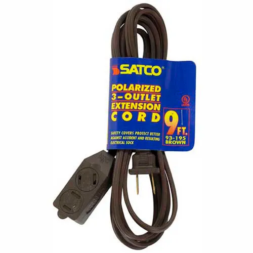 Satco 93-195 9 Ft. Extension Cord 16/2 SPT-2, Brown