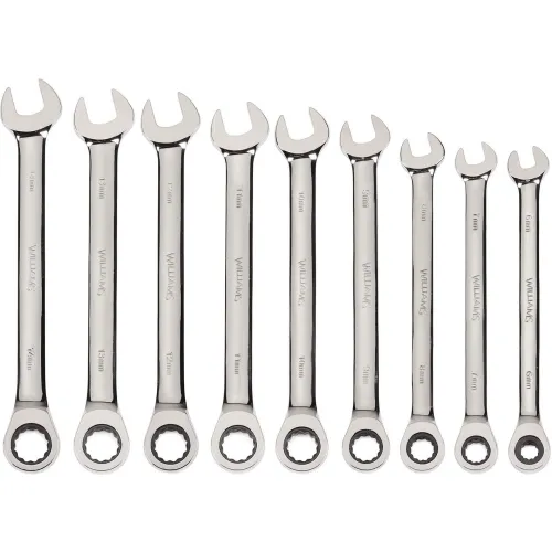 Williams® 9 Piece 6mm to 14mm 12-Point Combination Ratcheting Wrench Set, Chrome