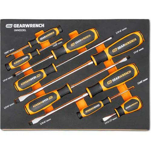 Gearwrench® 9 Piece Slotted Dual Material Screwdriver Modular Set In Foam Storage Tray