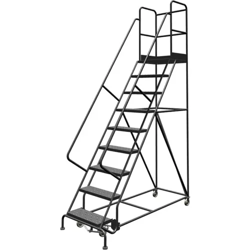 9 Step 24"W 30"D Top Step Steel Rolling Ladder, Perforated Tread, 42" Handrail - KDSR109246-D3