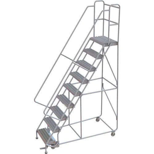 9 Step Aluminum Rolling Ladder, 24"W Grip Strut, 14"D Top Step, 32" Handrails - WLAR109245