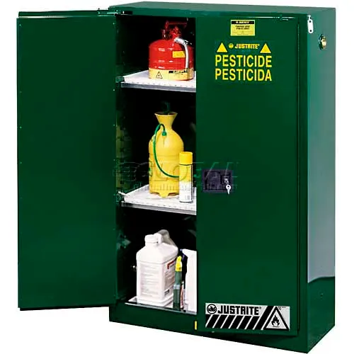 Justrite 90 Gallon 2 Door, Manual, Pesticide Cabinet, 43"W x 34"D x 65"H, Green