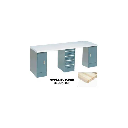 Global Industrial 96x30 Production Workbench, Maple Square Edge Top, 2 Cabinet, 4 Drawer GY
