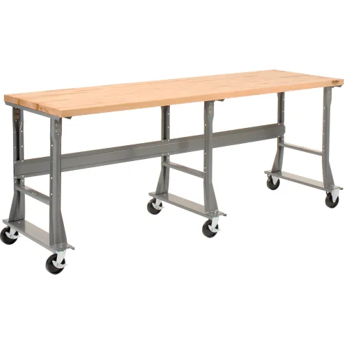 Global Industrial Extra Long Mobile Workbench, 96 x 36", Flared Leg, Maple Square Edge