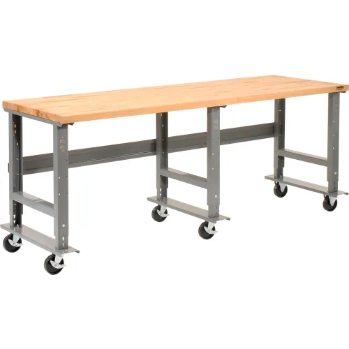 Global Industrial Extra Long Mobile Workbench, 96 x 36", Adjustable Height, Maple Square Edge