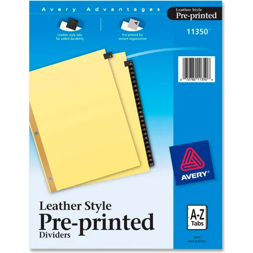 Avery A to Z Gold Line Black Leather Tab Divider, Printed A to Z, 8.5"x11", 25 Tabs, Buff/Black