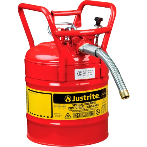 Justrite Accuflow DOT Transport Safety Can For Flammable Liquids, 1" Metal Hose, 5 Gal. Cap., Red