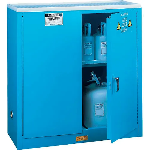 Justrite 30 Gallon Acid Corrosive Cabinet, Manual Close, 2 Door, 43"W x 18"D x 44"H, Blue