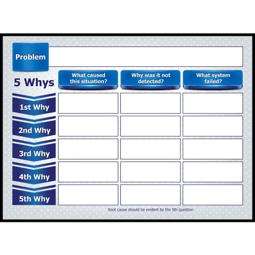 Visual Workplace Acrylic Dry Erase Board 5 Whys, 1/8" Thick, 48"W x 36"H, Blue