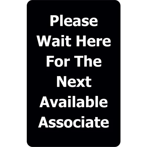 Tensabarrier® Classic Acrylic Sign, "Please Wait Here For Next Available", 7"Wx11"H, Blk/White