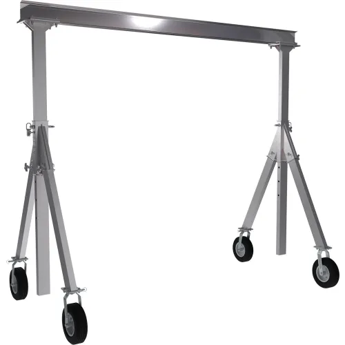 Vestil Adjustable Height Aluminum Gantry Crane, 15'W x 10-11/16'H, Pneumatic Casters, 1500 lb. Cap