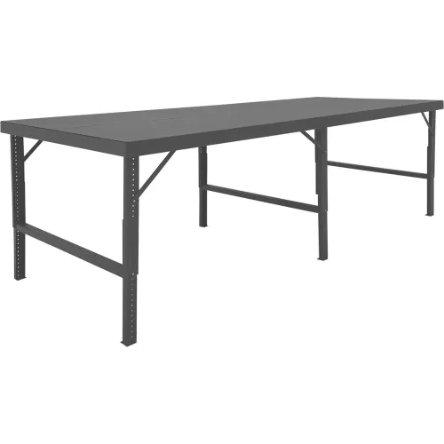 Durham Mfg.® Adjustable Height Folding Leg Workbench, 120 x 48-1/4", Steel Flush Edge