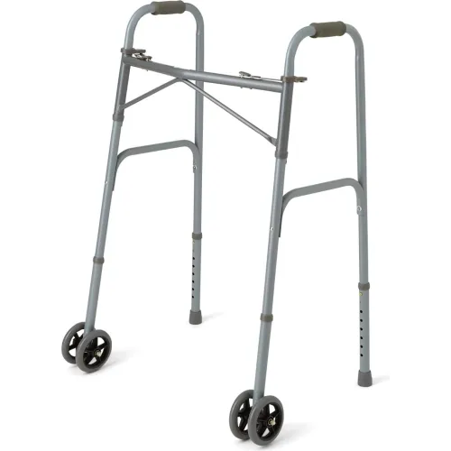 Medline Adult Bariatric Two Button Folding Walker w/ 5" Casters, Silver