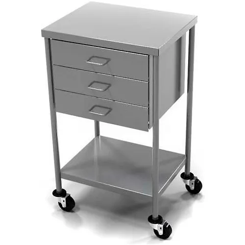AERO Stainless Steel Anesthesia Utility Table with 3 Drawers & Flat Top Shelf