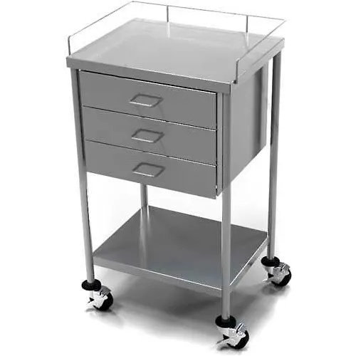 AERO Stainless Steel Anesthesia Utility Table with 3 Drawers & Guard Rail Top Shelf