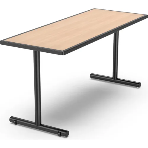 Palmer Hamilton Aero Go T-Leg Table, 60"L x 24"W x 29"H, Beigewood Laminate, Black