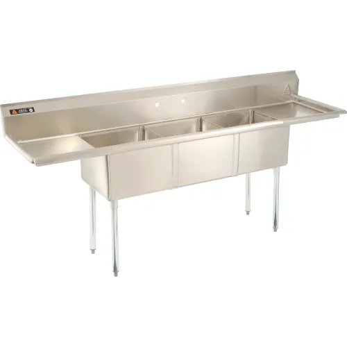 Aero Manufacturing Company® AF3-1818-18LThree Bowl SS Sink 18 x 18, Right/Left Side Drainboard