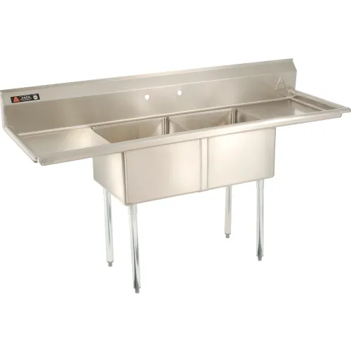 Aero Manufacturing Company® Two Bowl SS sink 18 x 18 with 16-1/2" Right & Left Sided Drainboard