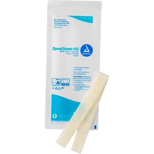 Dynarex DynaGinate AG Silver Calcium Alginate Dressing, 12"L x 1/4"W, 50 Pcs