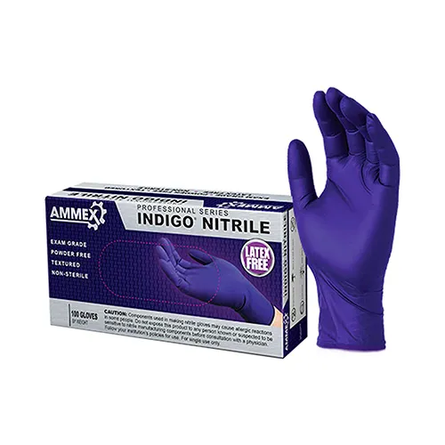 Ammex® AINPF Textured Medical/Exam Nitrile Gloves, Powder-Free, Indigo, X-Large, 100/Box
