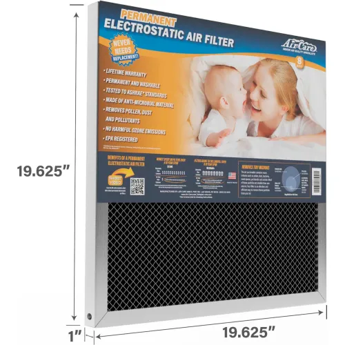 Air-Care Permanent Washable Electrostatic Air Filter, 20 x 20 x 1", MERV 8