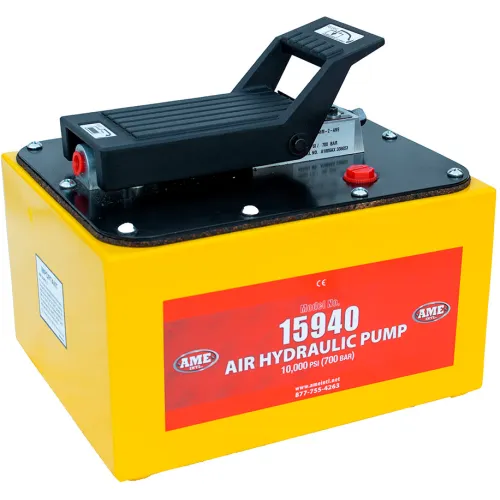 AME International Air-Hydraulic Pump, 10,000 PSI, 2 Quart, Safety Yellow, Steel