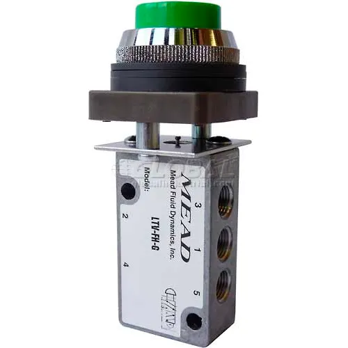 Bimba-Mead Air Valve LTV-FHR, 5 Port, 2 Pos, Manual, 1/8" NPTF Port, Red Flush Head Actr