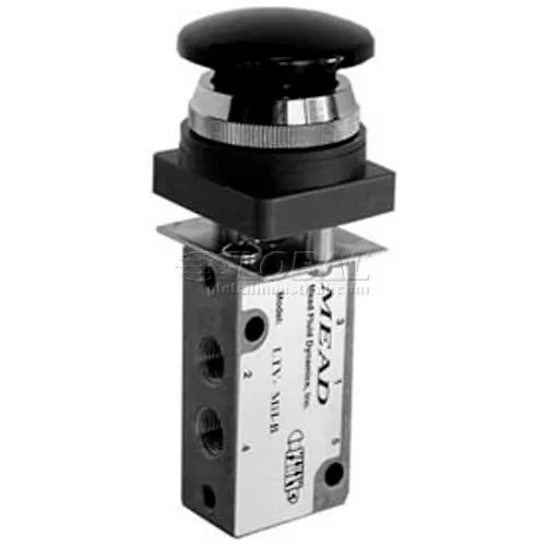 Bimba-Mead Air Valve LTV-MHR, 5 Port, 2 Pos, Manual, 1/8" NPTF Port, Red Mushroom Head Actr