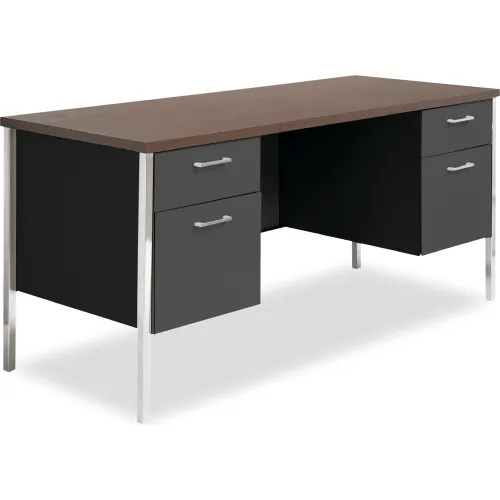 Alera® Double Pedestal Steel Credenza, 60"x 24"x 29.5", Mocha/Black